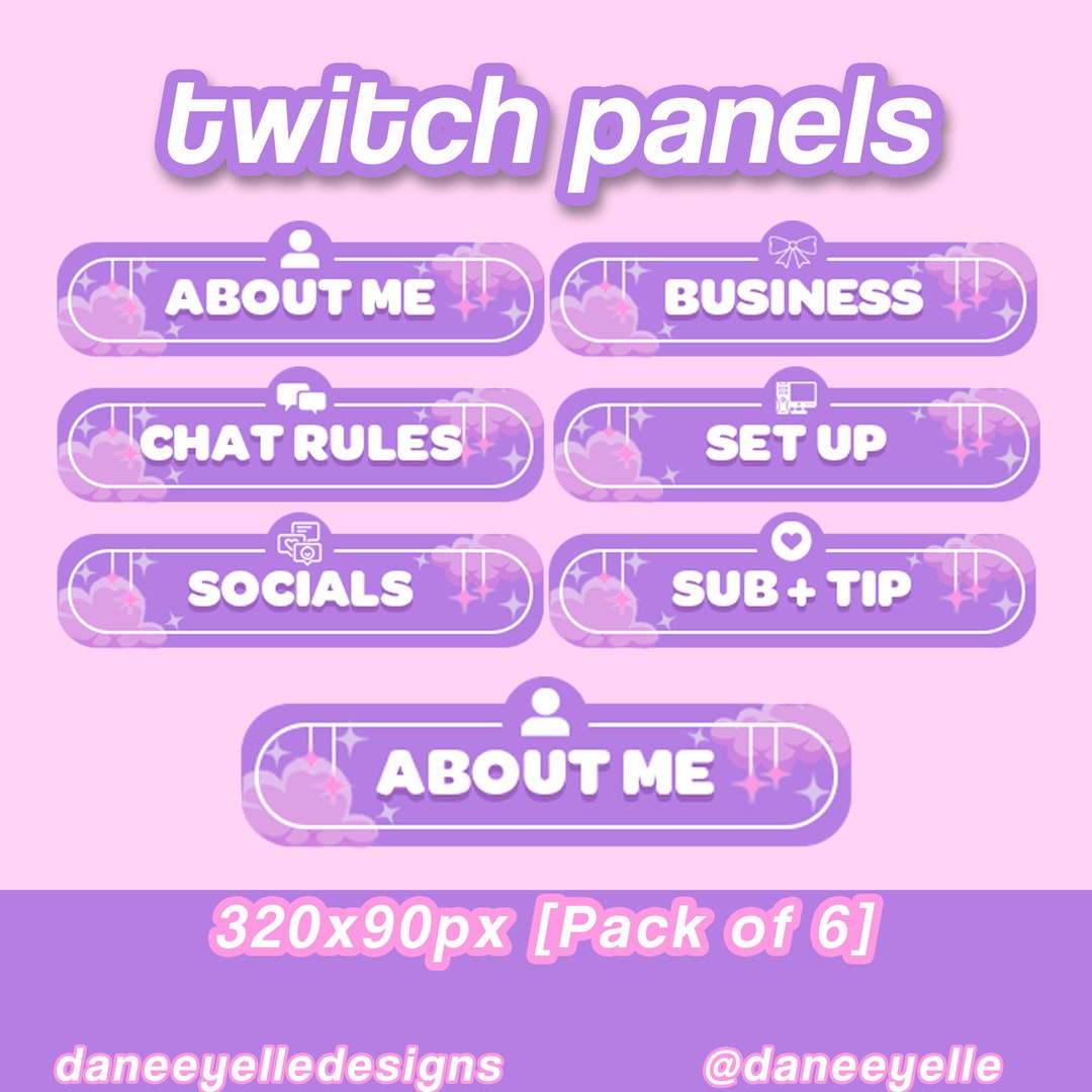 Cute Purple Cloud Sparkles Twitch Panels pack of 6 Kawaii Stars