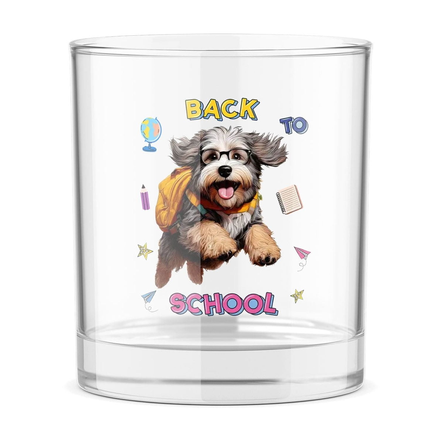 Back to School Cute Old English Sheepdog 11oz Whiskey Glass Mug Dog