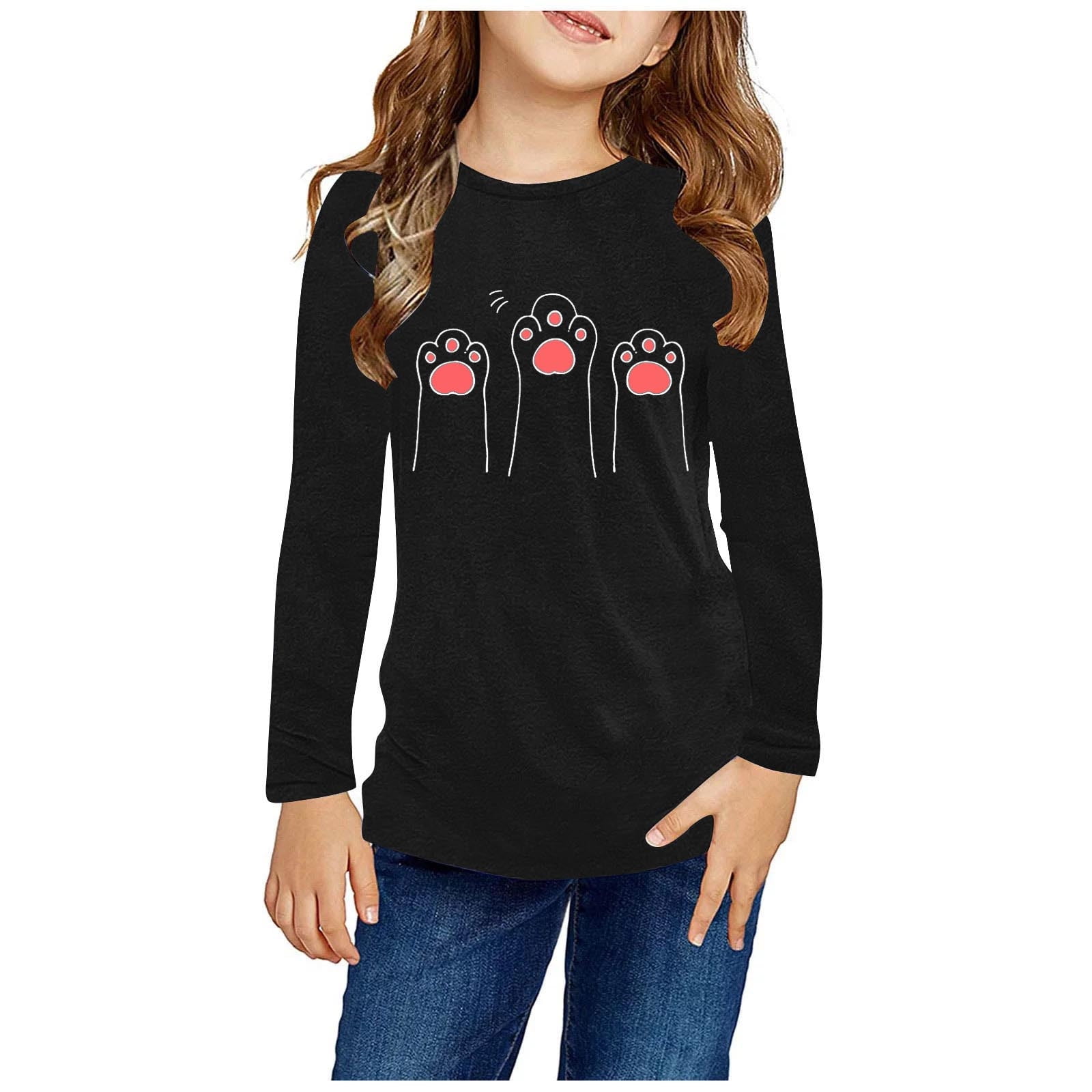 Bnwani Long Sleeve Toddler T Shirt Black Crew Neck Casual Cute Tops 7 8