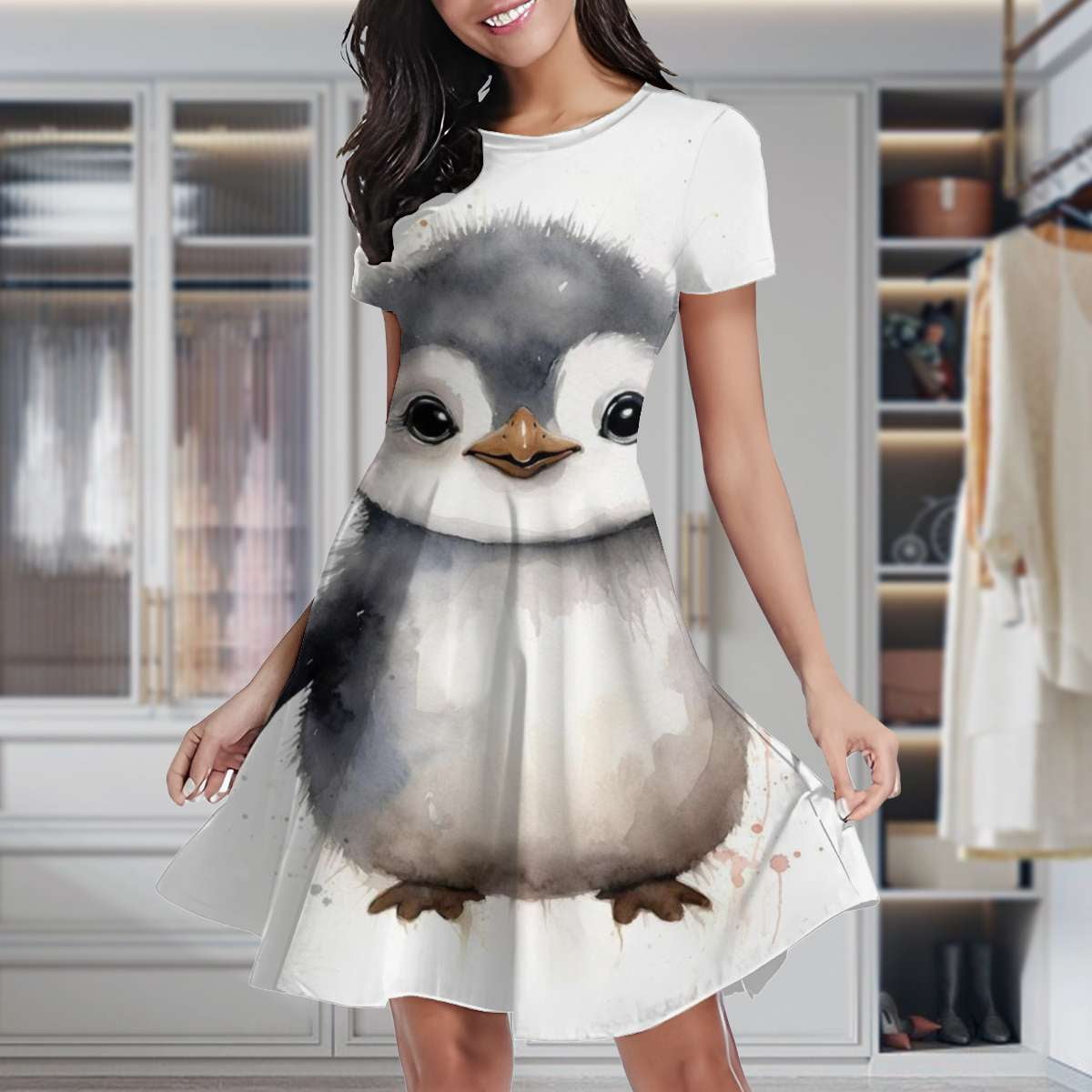 Cute Penguin Women #39 s Classic Swing Skater Dress Casual Work Party