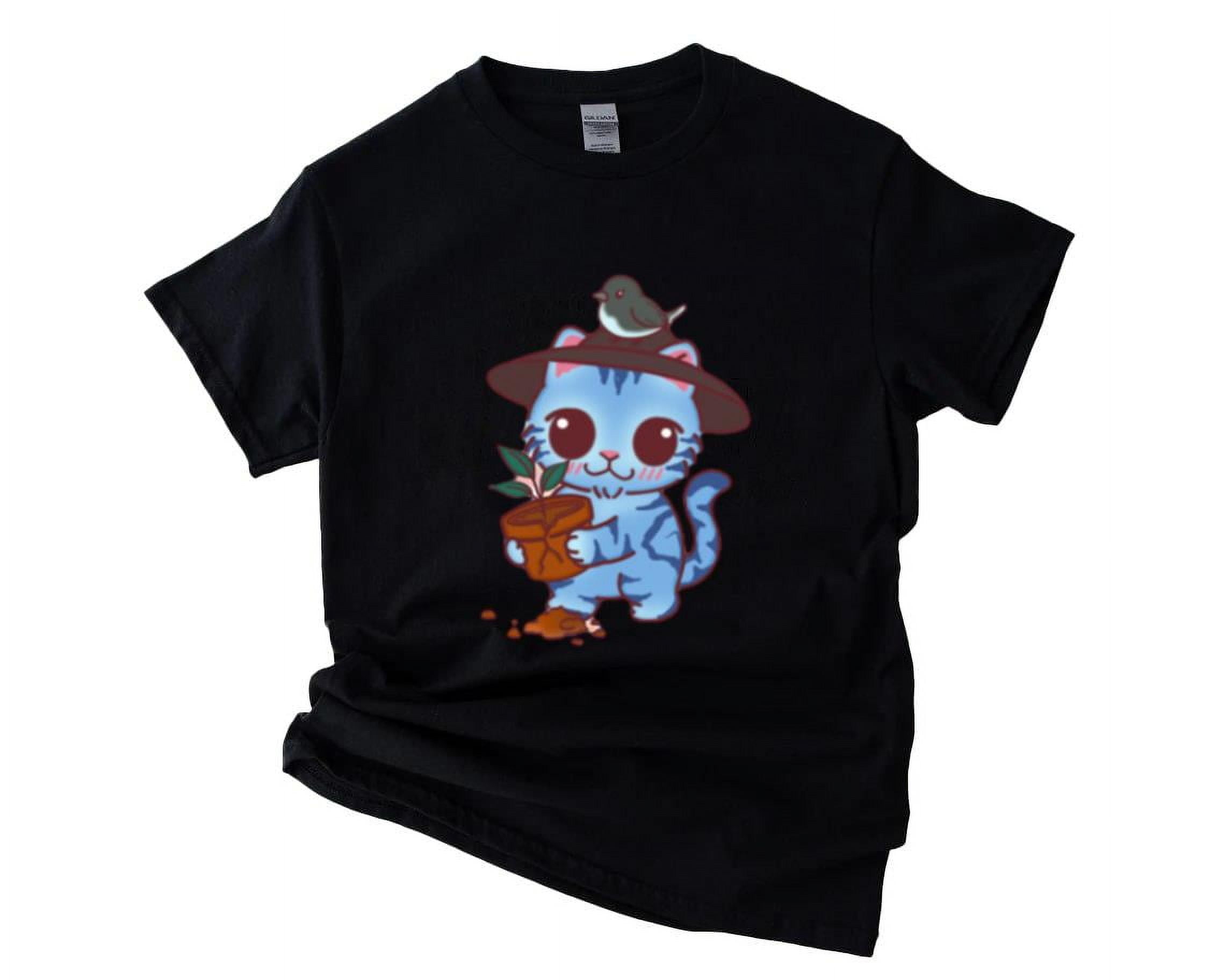 Derpy Blue Cat with Bird Cute Funny Animal Friend Character Unisex T