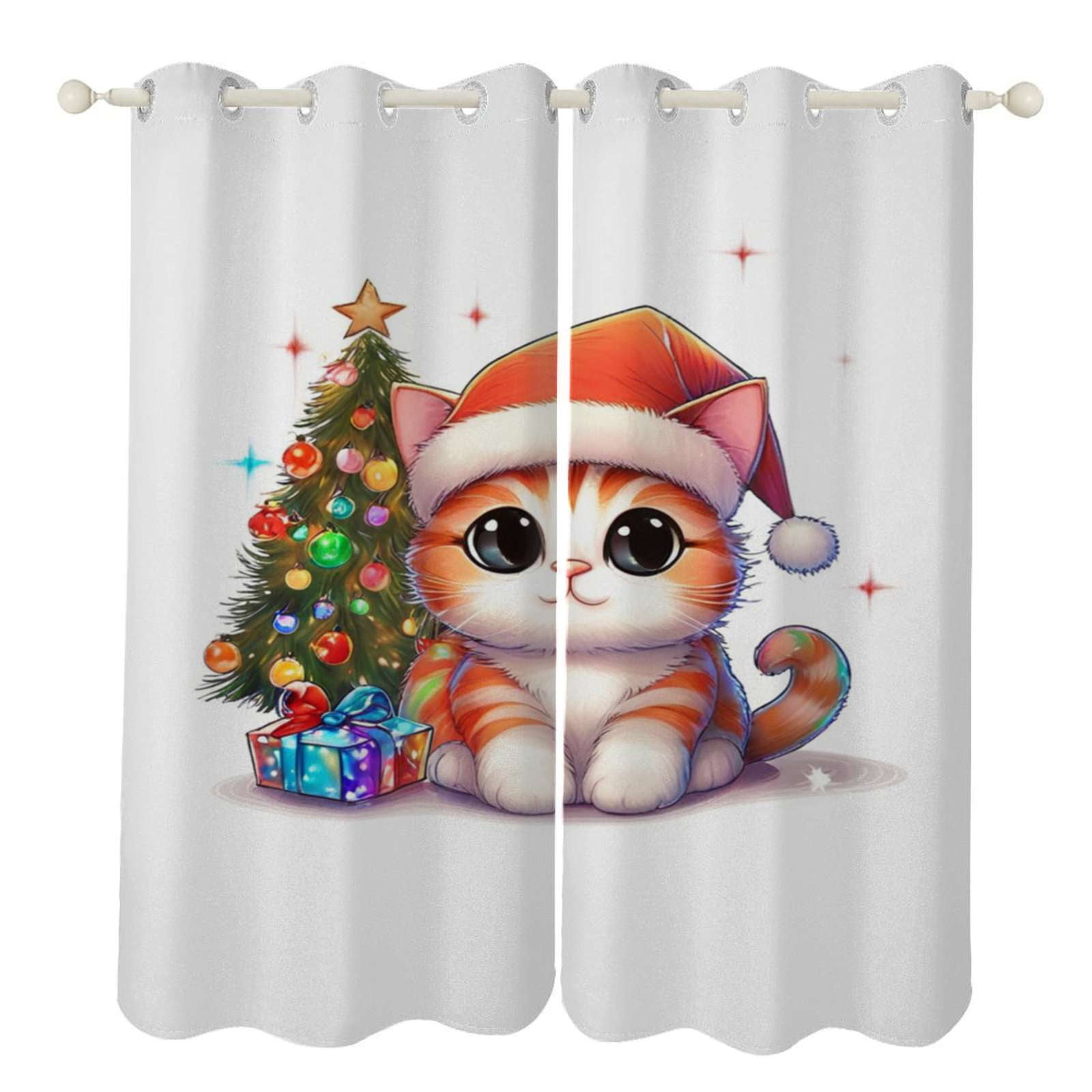 Cute Cat Christmas Decor Sunshade Curtains Home Bedroom Living Room
