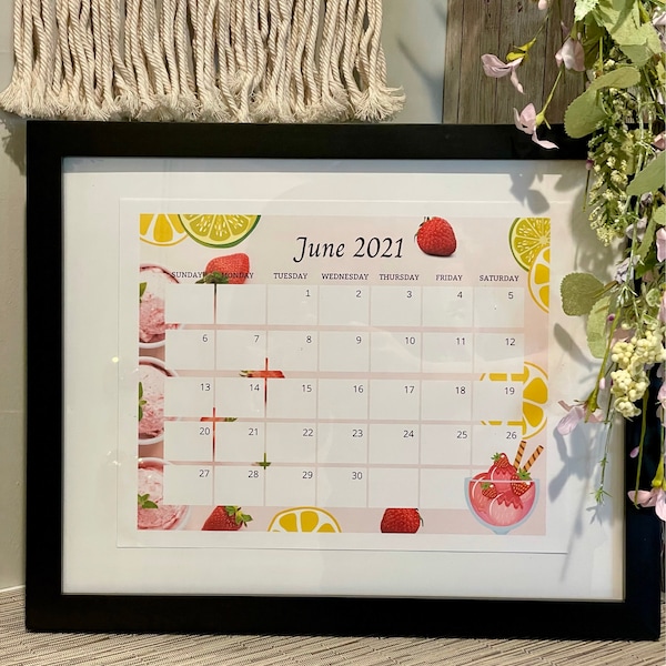 June 2025 Calendar Cute Colorful Calendar Fresh Strawberries and Ice