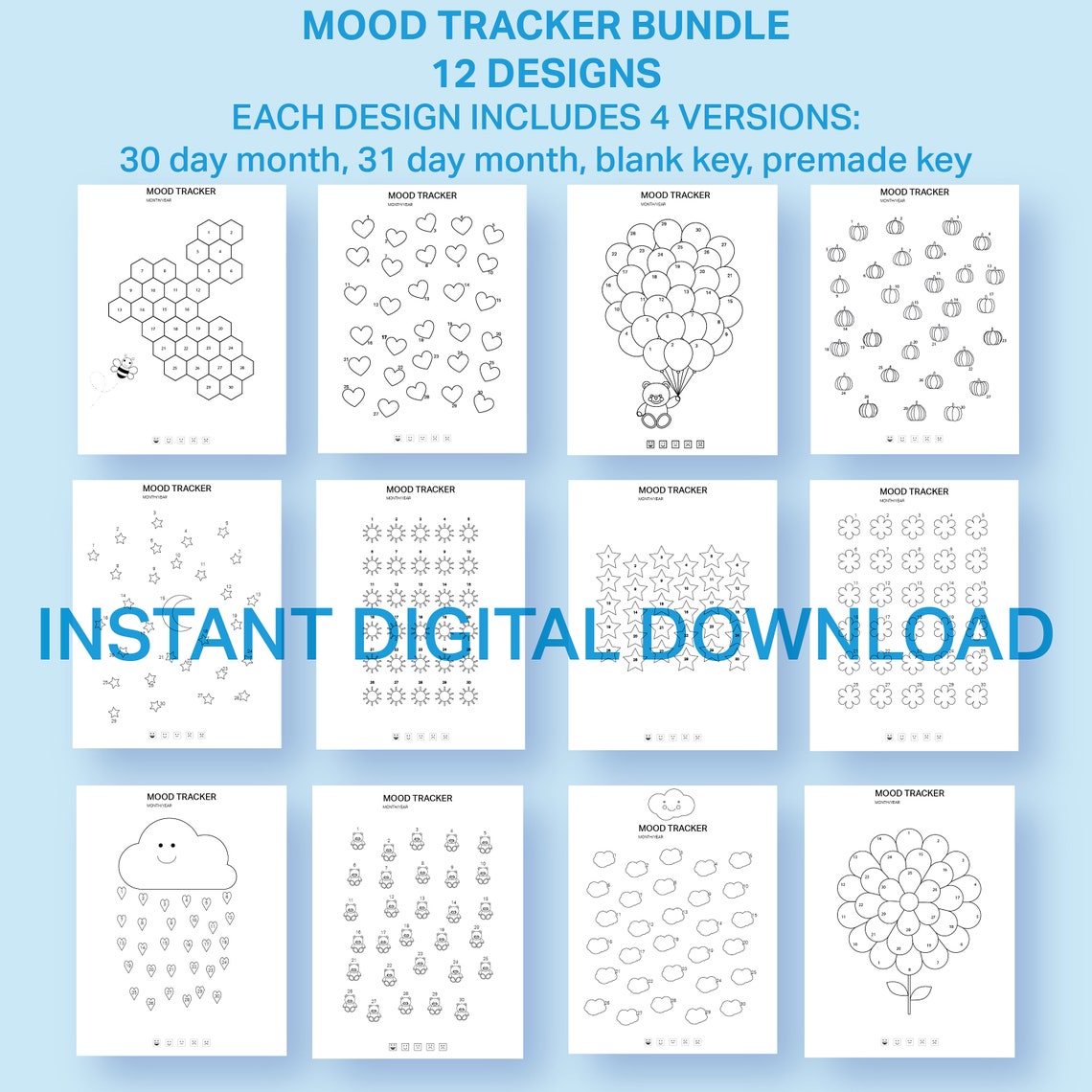 Mood Tracker Bundle Printable 12 Designs Emotions Tracker Etsy