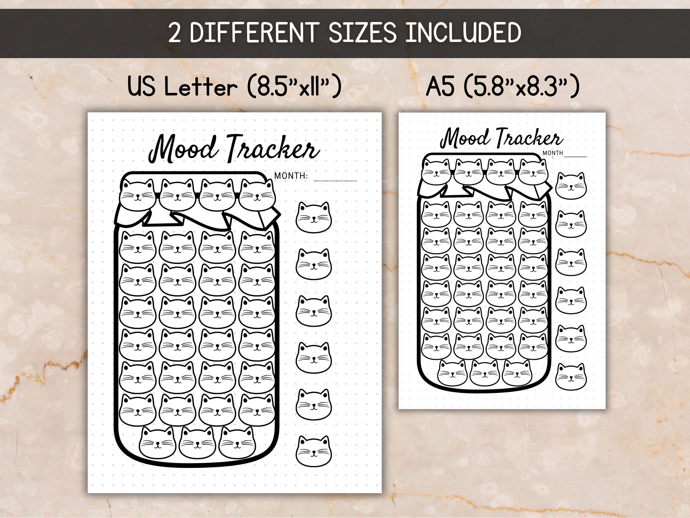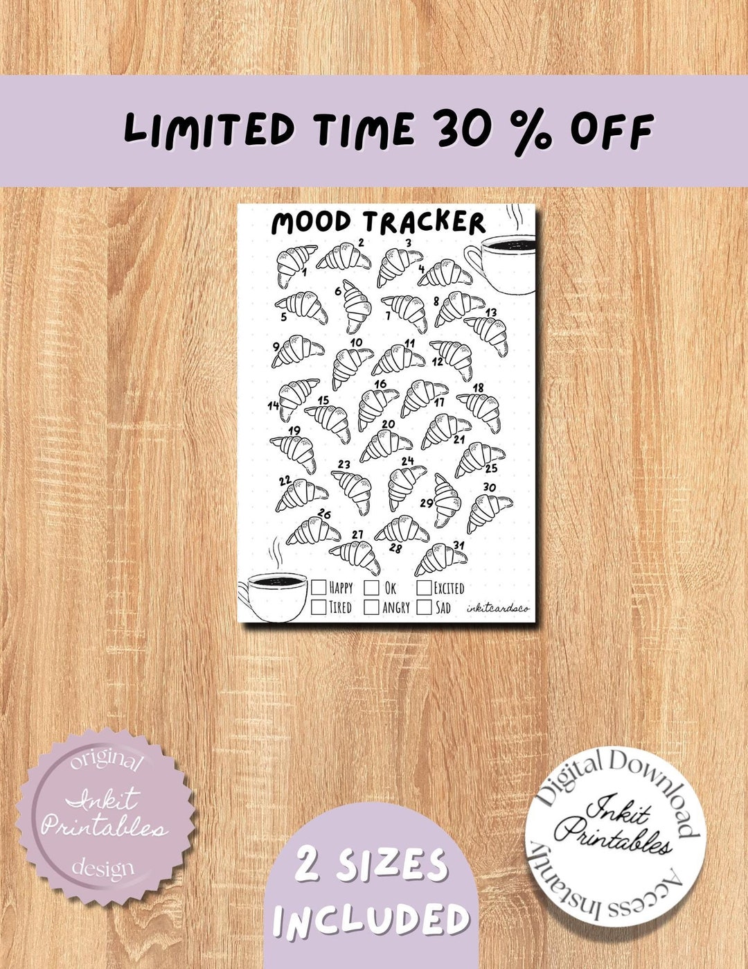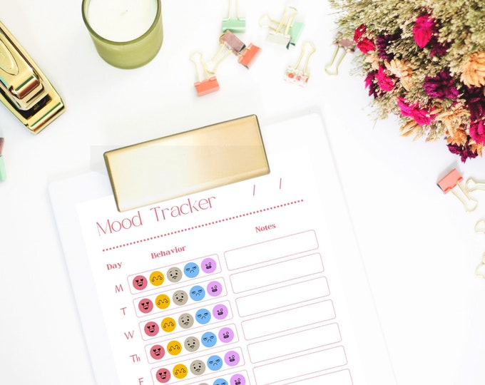 Cute Mood Tracker Printable Multiple Colors US Letter Half Letter A4
