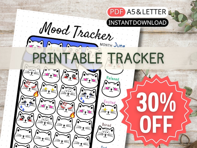 Cute Mood Tracker US Letter Size Instant Download Printable Mood