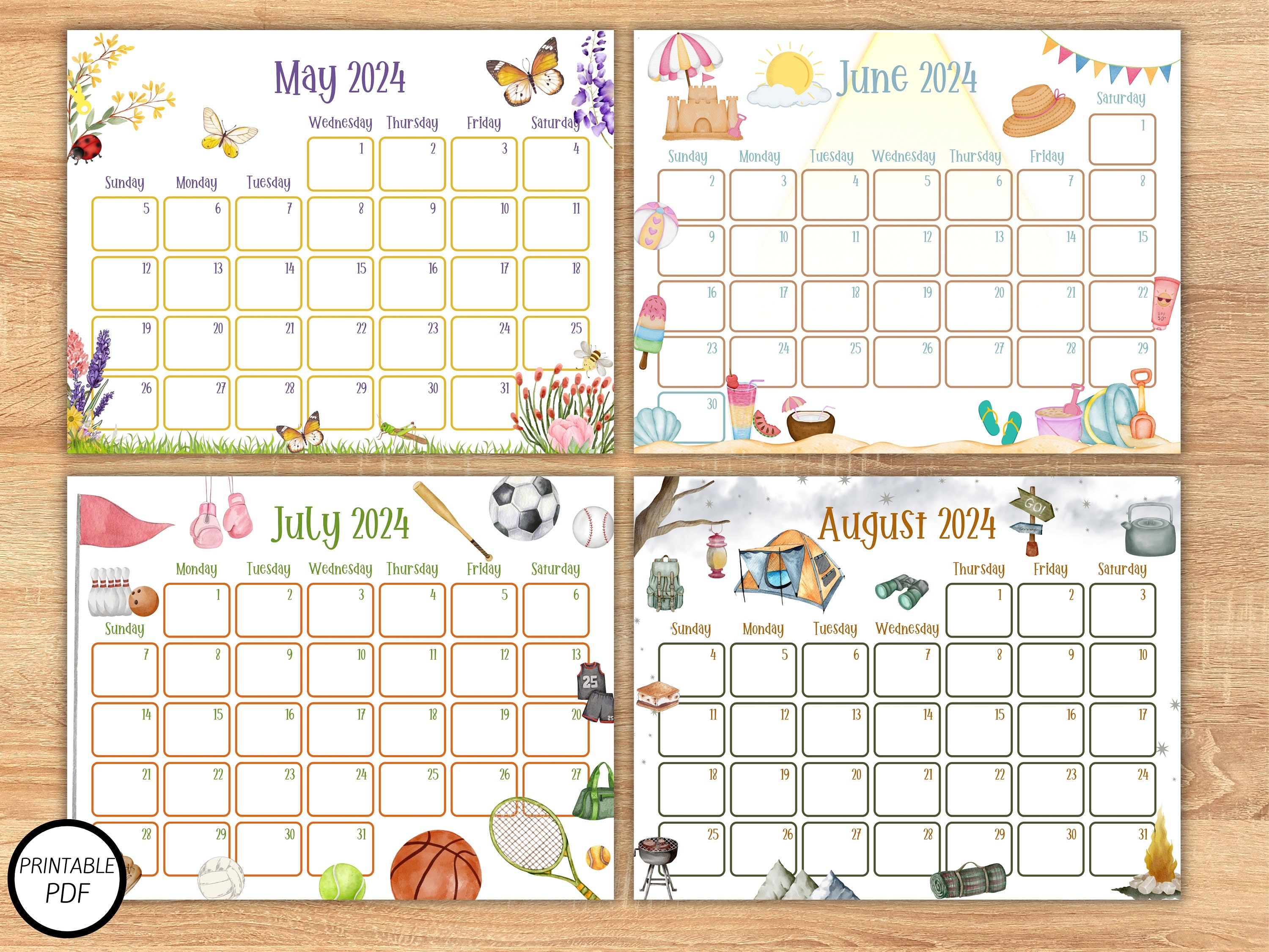 2024 Cute Printable Calendars Printable Kids Calendars Watercolor