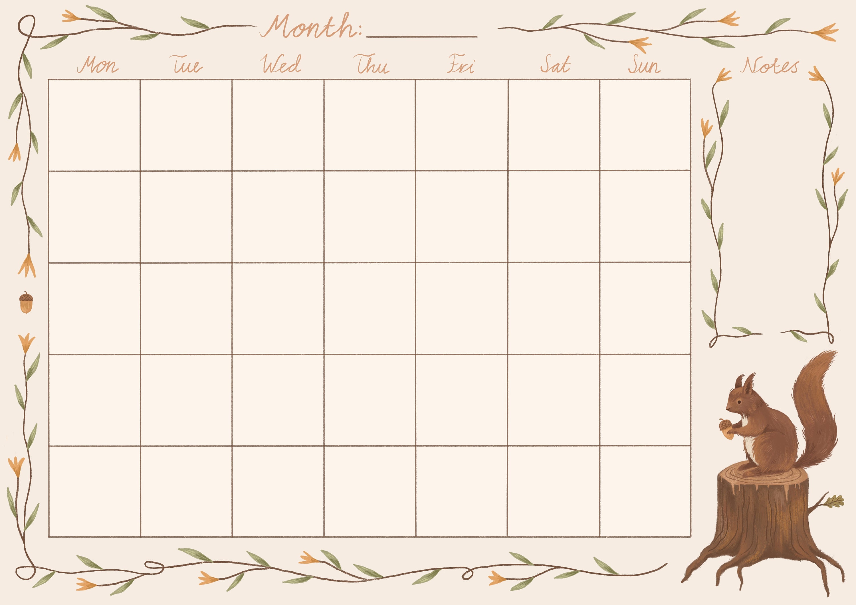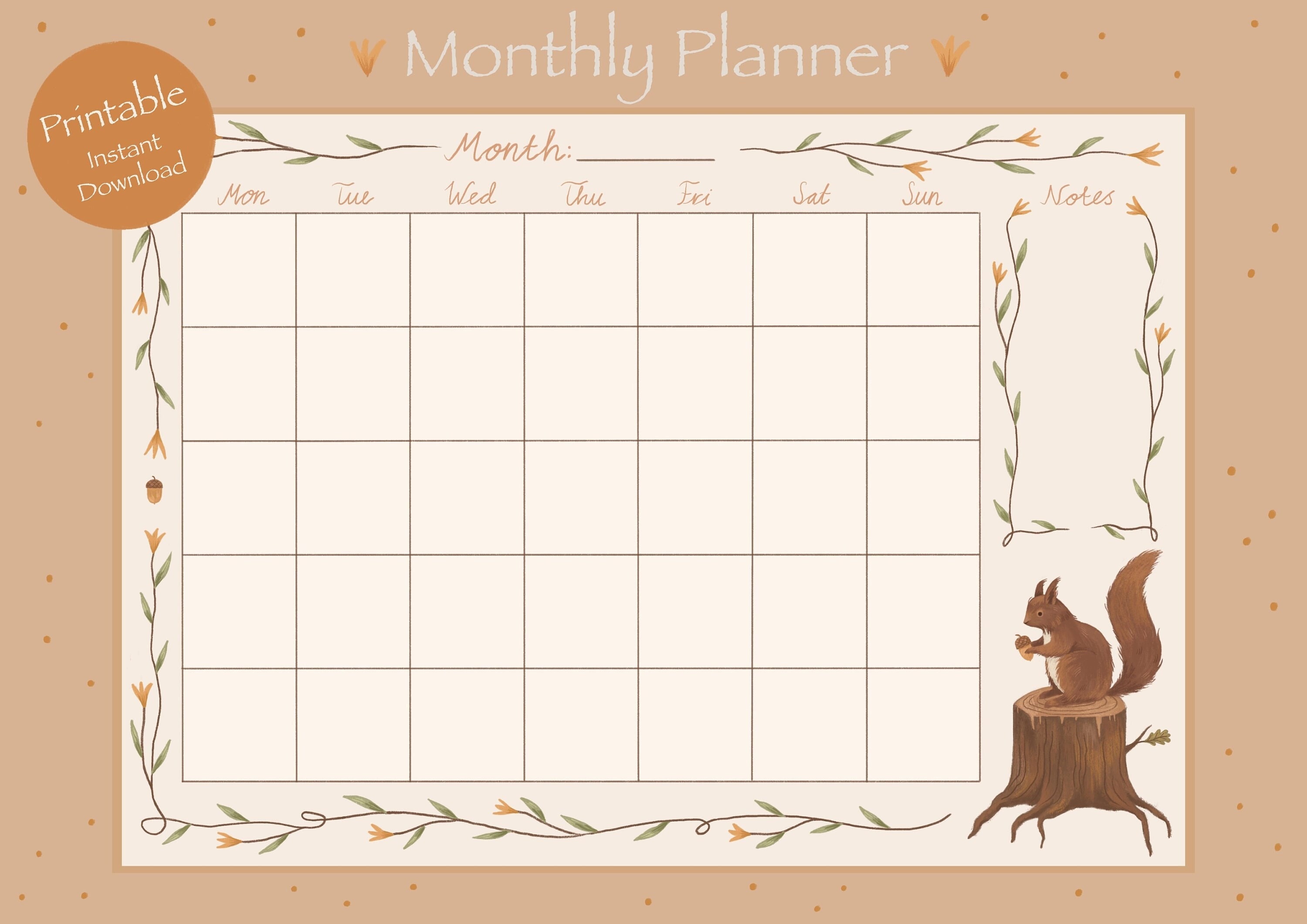 Cute Monthly Planner Printable Stationery Instant Download A4