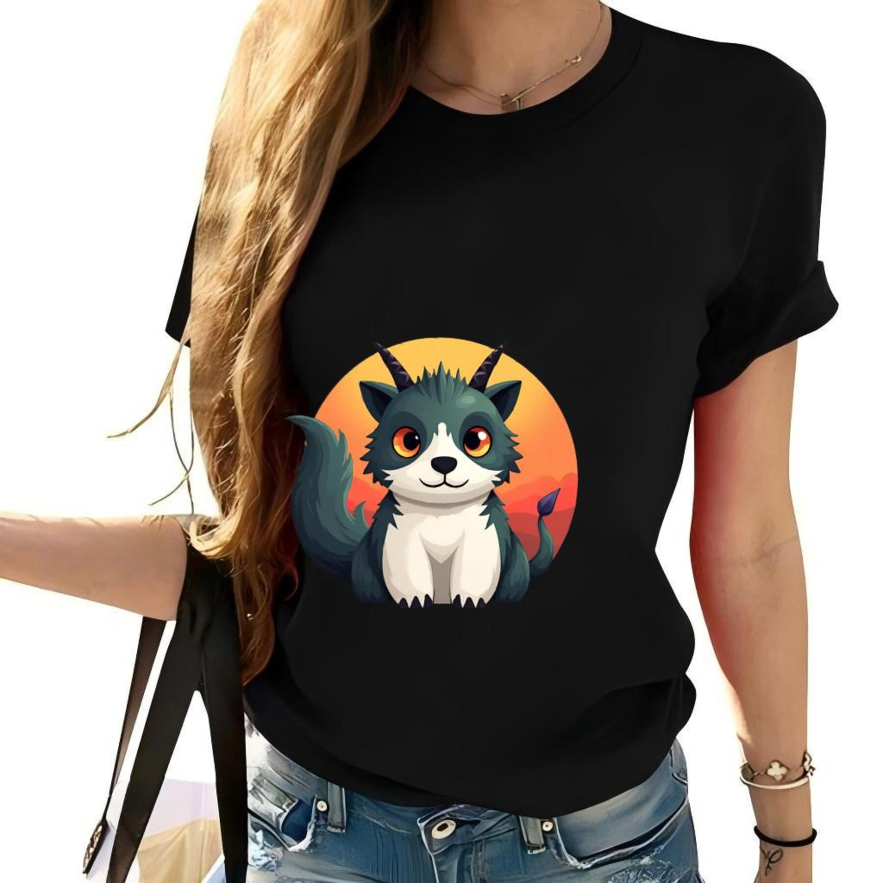 Cute Cartoon Creature Cotton Short Sleeve T Shirt for Women Character