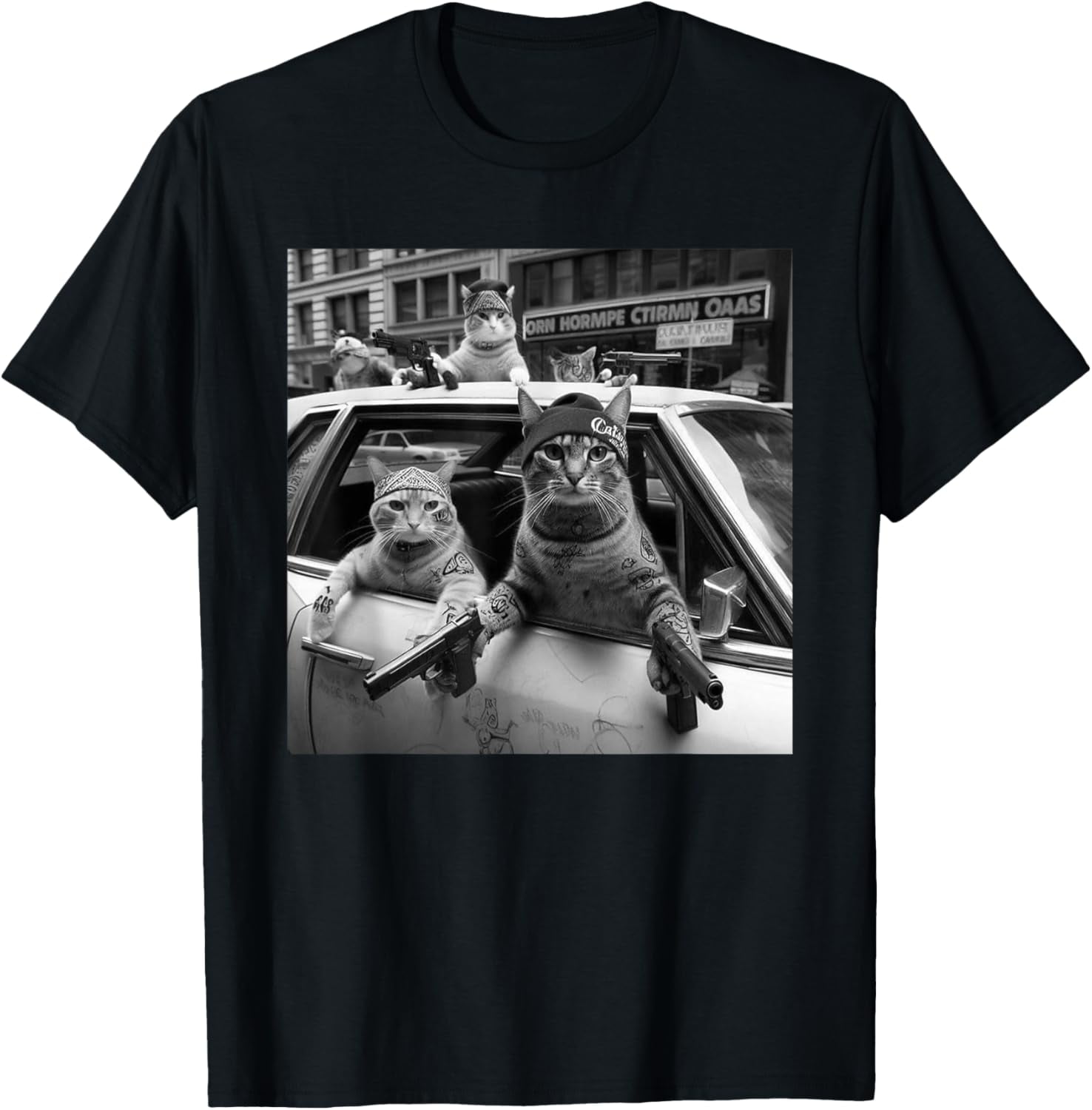 Cute Kitten Cat Lover Funny Gangster Cats Street Design T Shirt