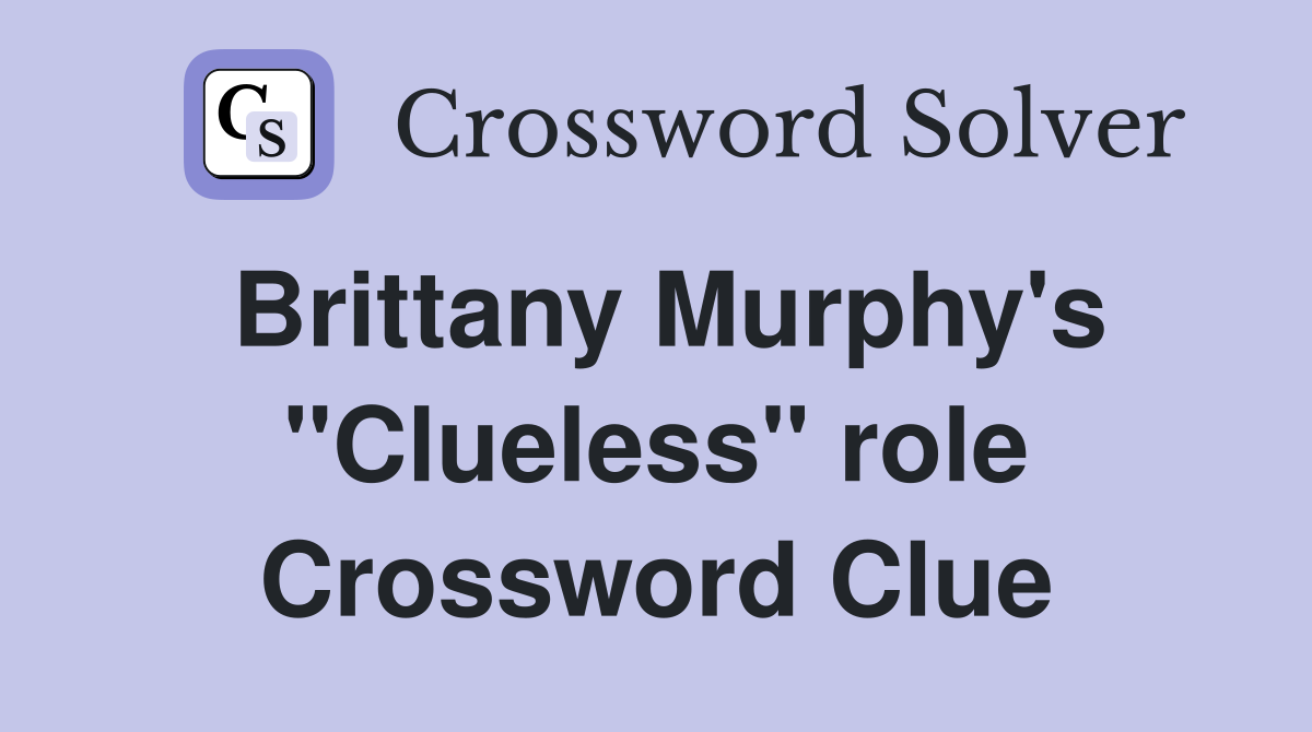 Brittany Murphy #39 s quot Clueless quot role Crossword Clue Answers Crossword