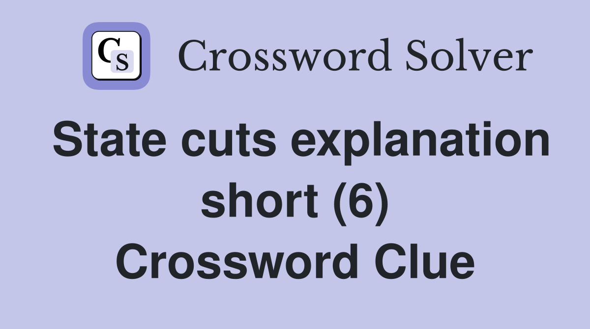 State cuts explanation short (6) Crossword Clue Answers Crossword
