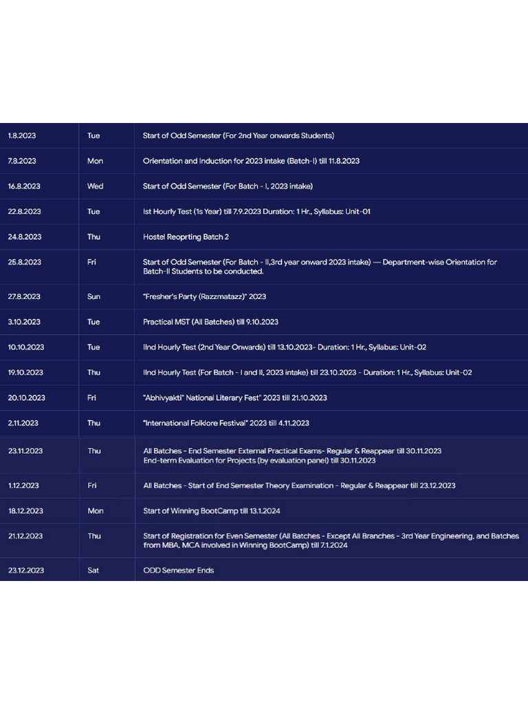 Academic Calendar Best Engineering Management College in Odisha GITAM