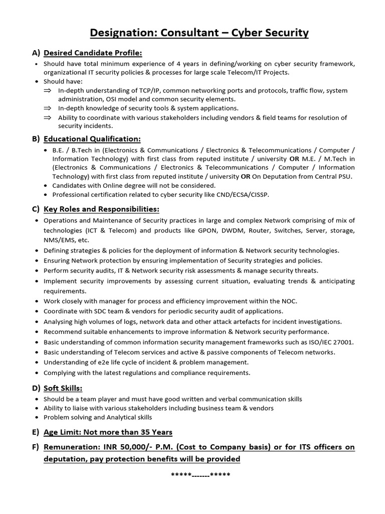 1 170 Job Description Consultant Cyber Security PDF Computer
