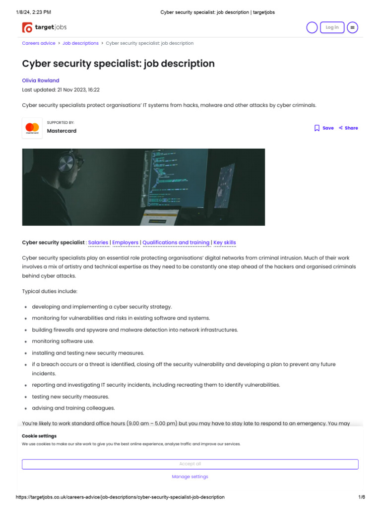 Cyber Security Specialist Job Description Targetjobs PDF