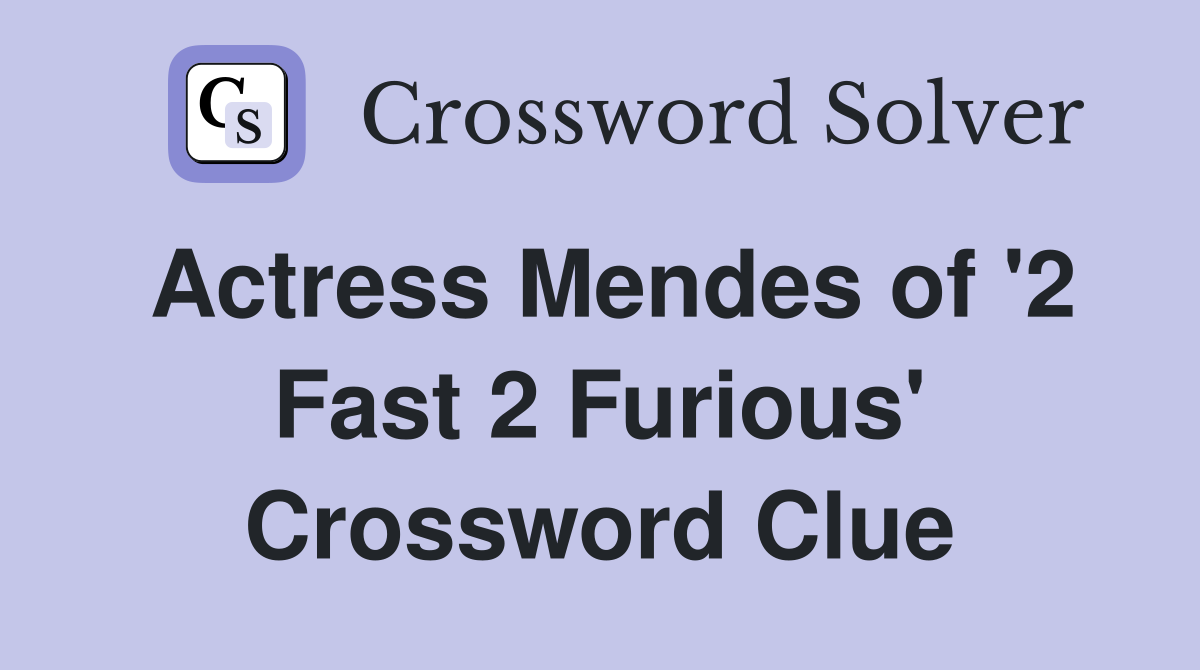 Actress Mendes of #39 2 Fast 2 Furious #39 Crossword Clue Answers