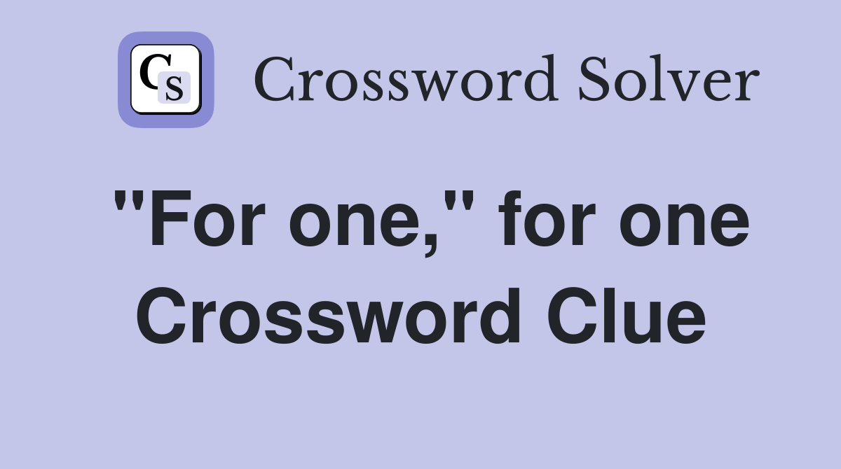 quot For one quot for one Crossword Clue Answers Crossword Solver