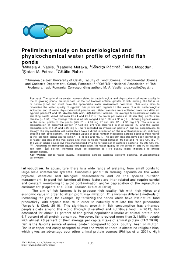 (PDF) Preliminary study on bacteriological and physicochemical water