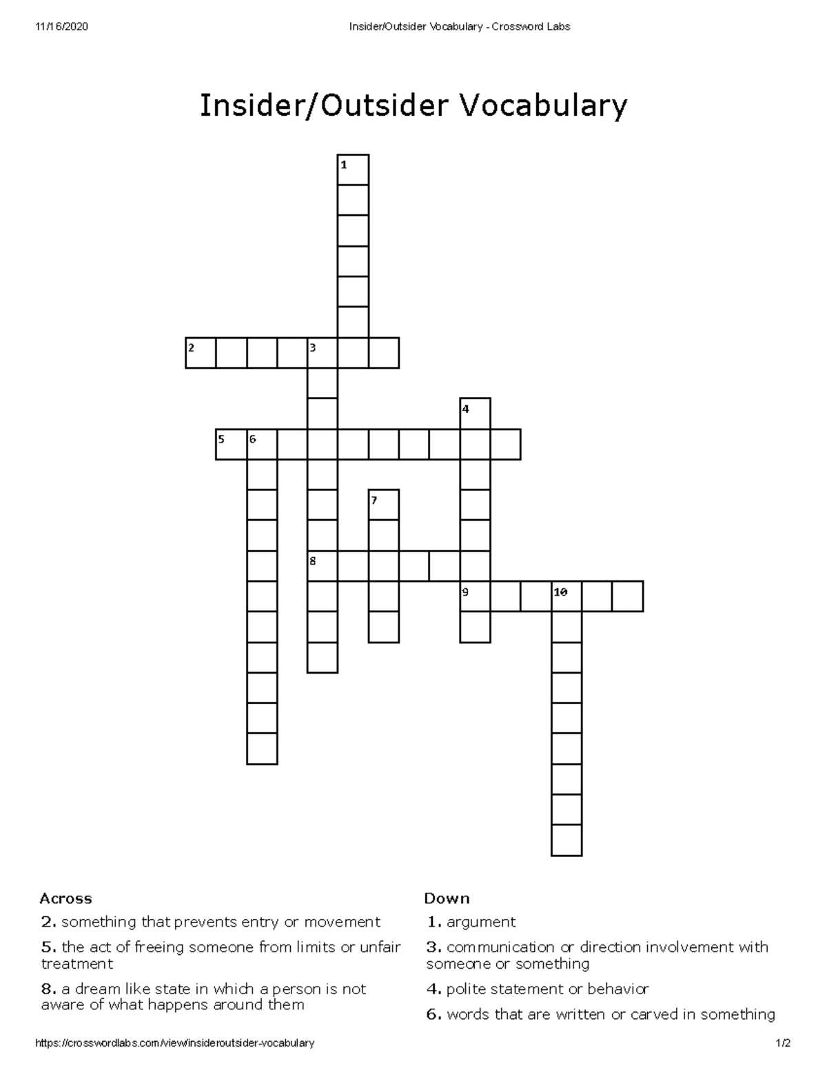 Tyberius Delaney Insider Outsider Vocabulary Crossword Labs 11/16