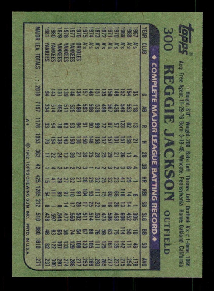 1982 Topps Baseball #300 Reggie Jackson NM/MT or Better *d12 eBay