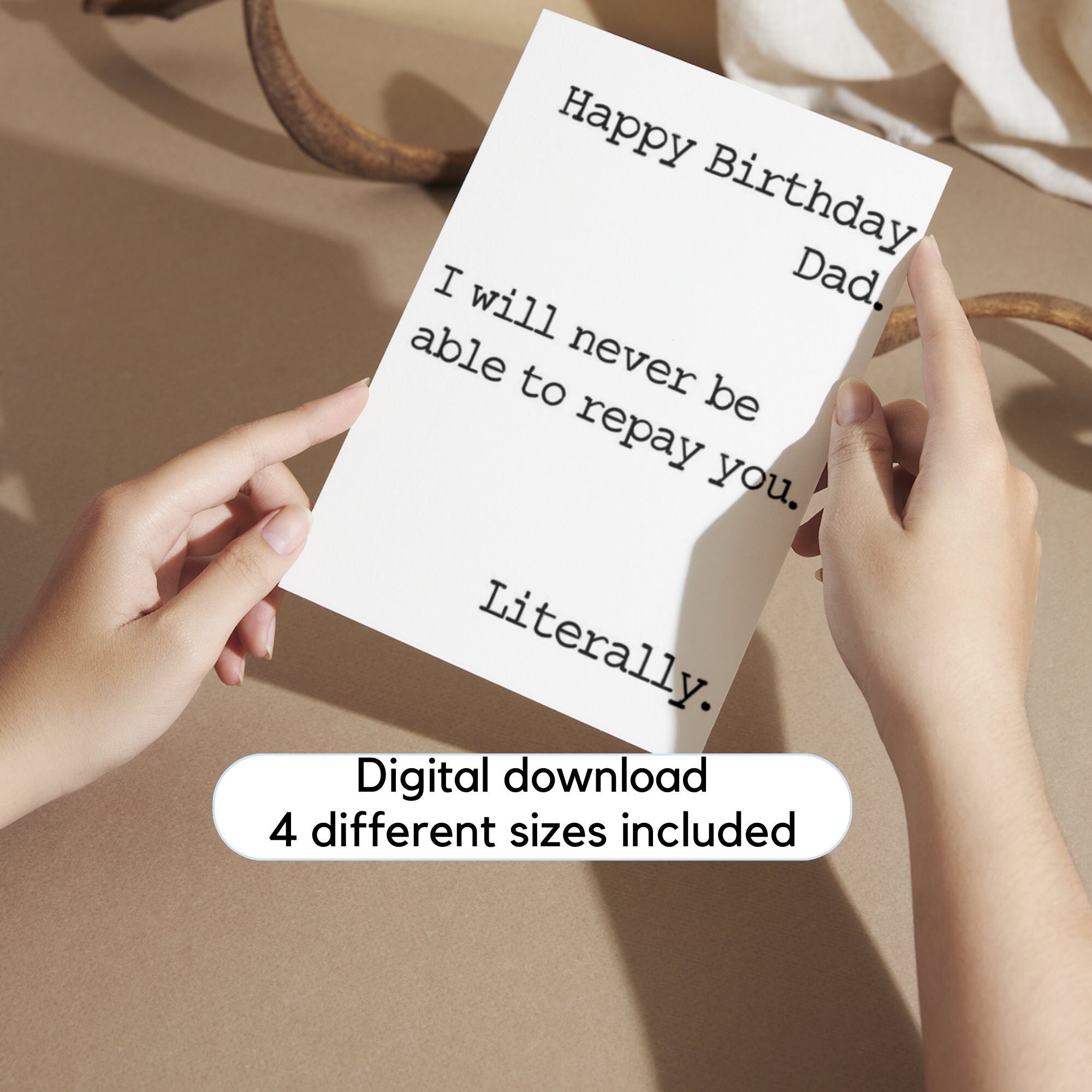 Dad Birthday Card Printable Greeting Card Digital Download Gifts for