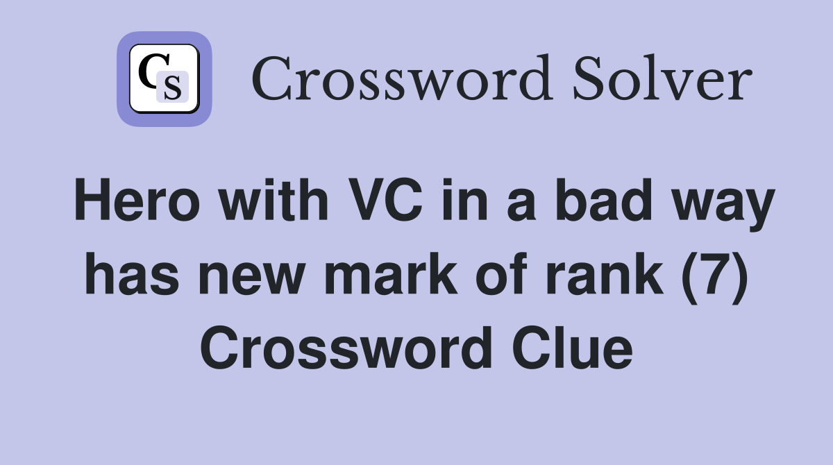 Hero with VC in a bad way has new mark of rank (7) Crossword Clue