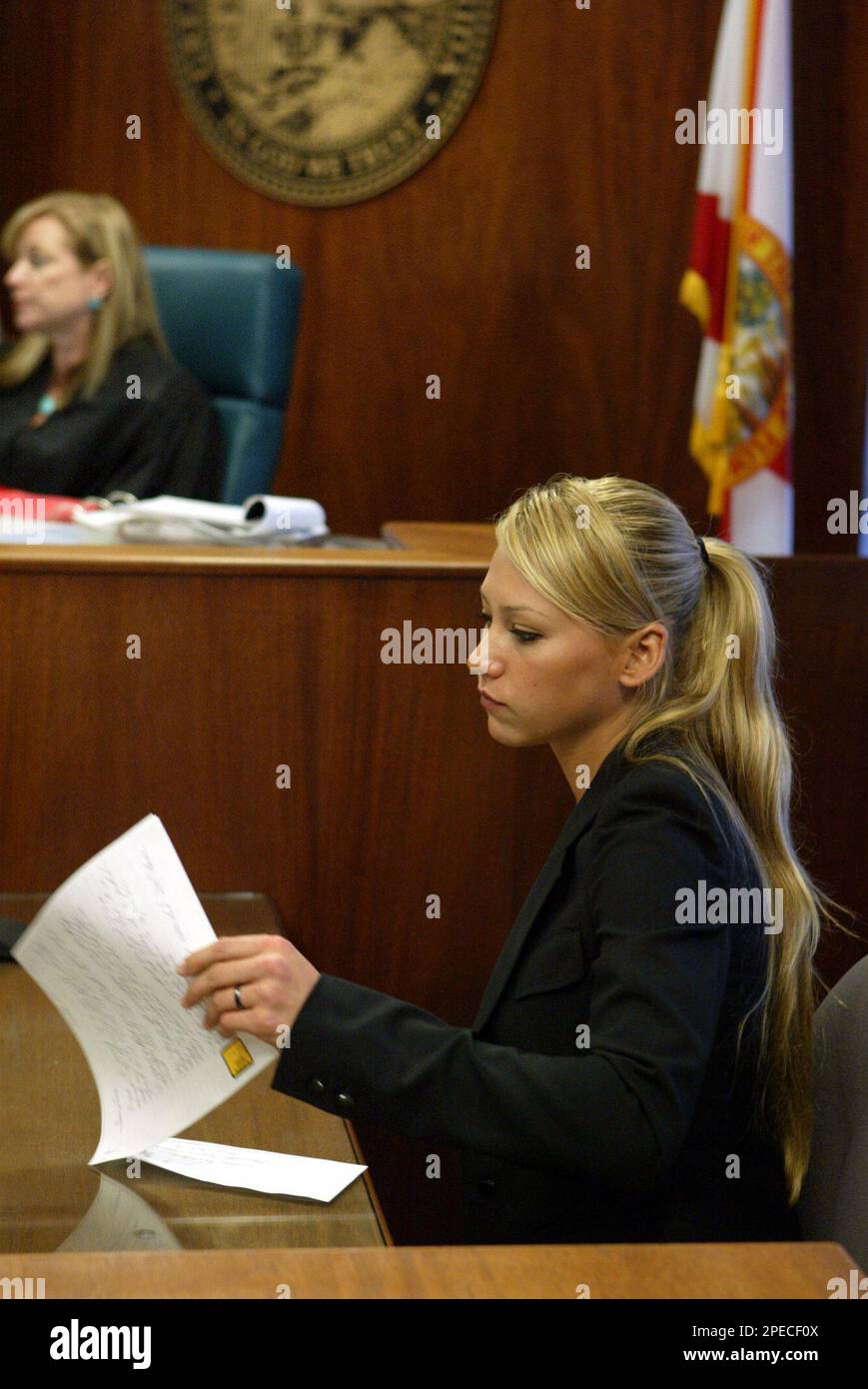 Tennis star Anna Kournikova reads portions of a letter from accused