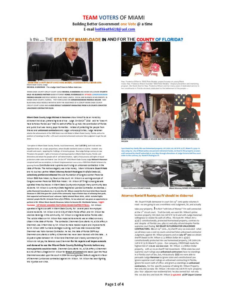 Miami Dade County Circuit Court Judge Micheal A Hanzman Attack On 5000