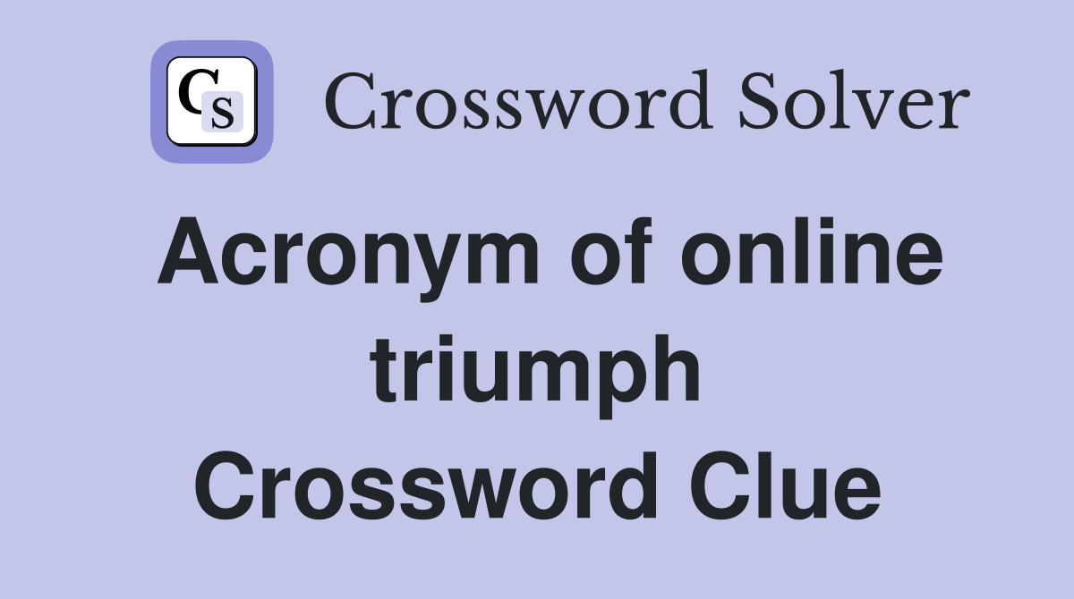 Acronym of online triumph Crossword Clue Answers Crossword Solver