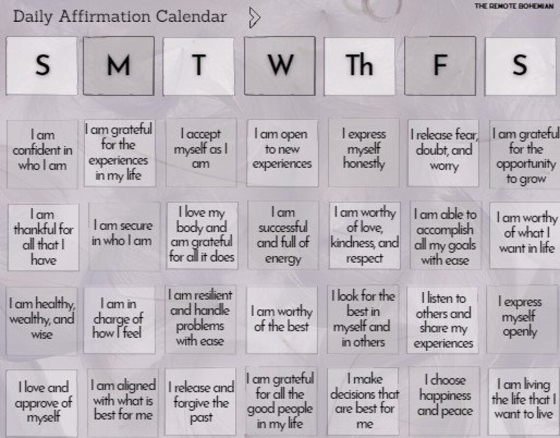 Daily Affirmations Calendar Set of 4 DIGITAL DOWNLOAD Etsy