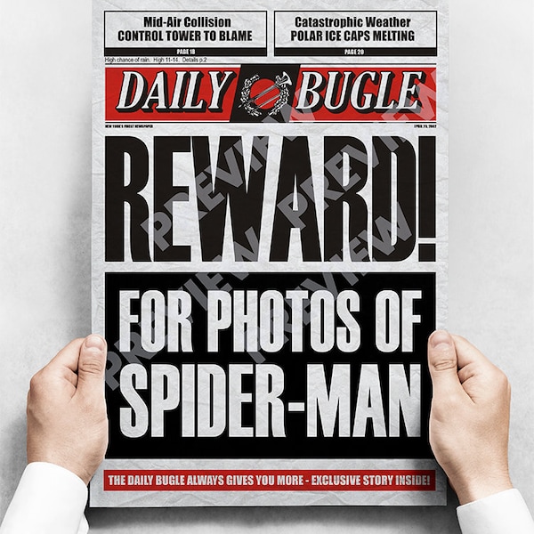 Custom Spider man Daily Bugle Digital Newspaper Template Etsy