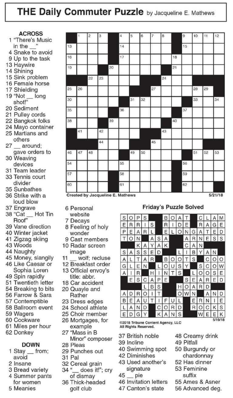 The Daily Commuter Puzzlejackie Mathews Tribune Content Agency