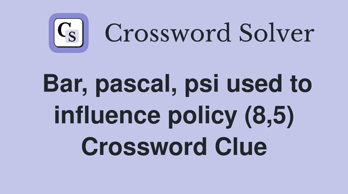 Bar pascal psi used to influence policy (8 5) Crossword Clue