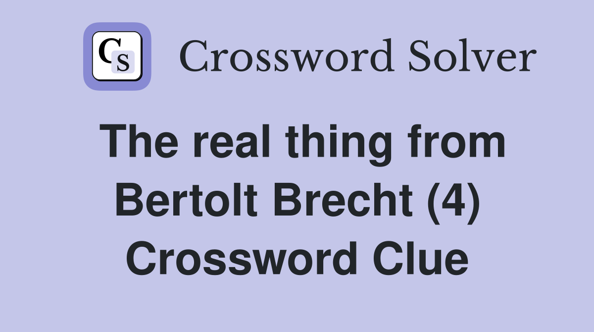 The real thing from Bertolt Brecht (4) Crossword Clue Answers