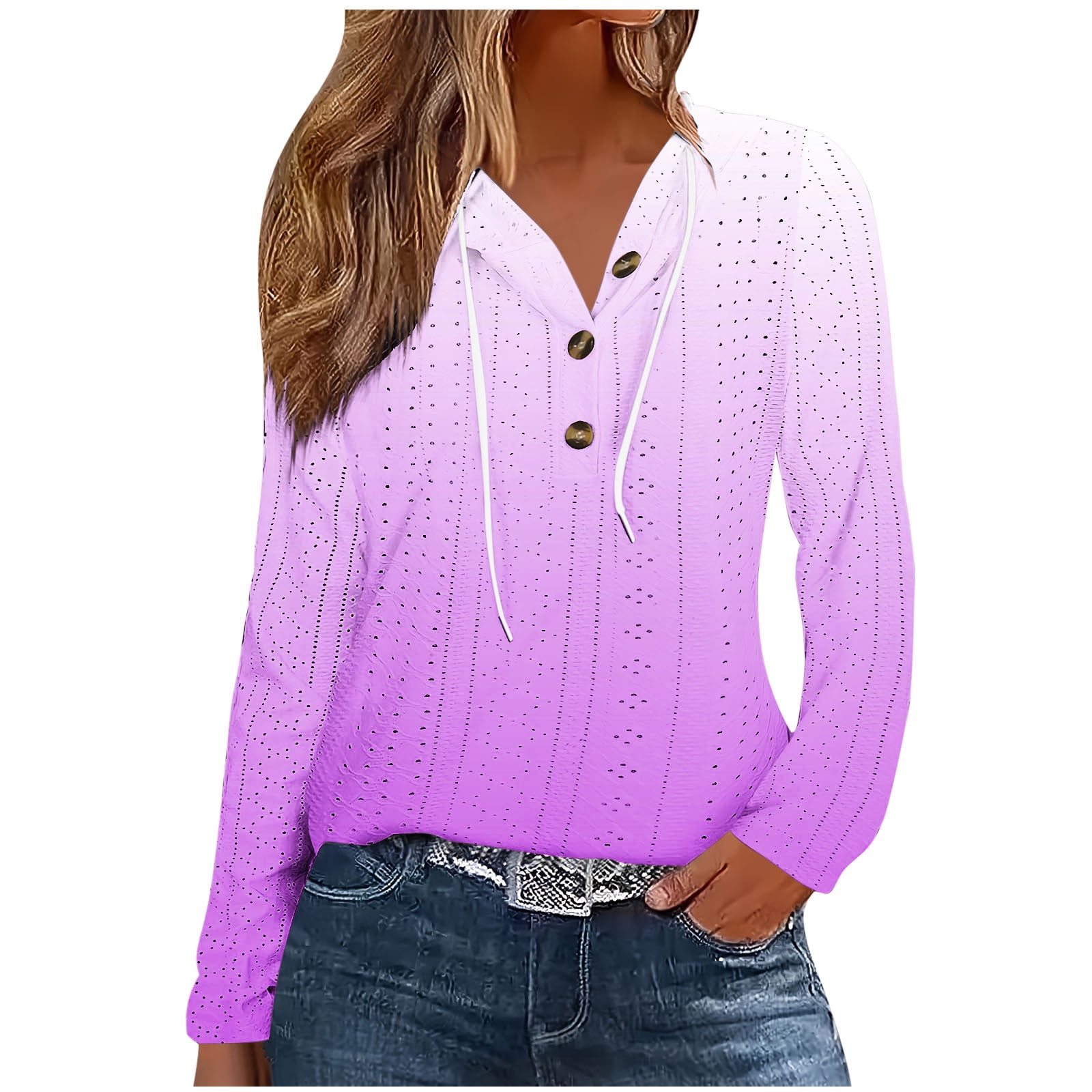 Caywon Women #39 s Fashion Gradient Solid Color Casual Thin Long Sleeve Top