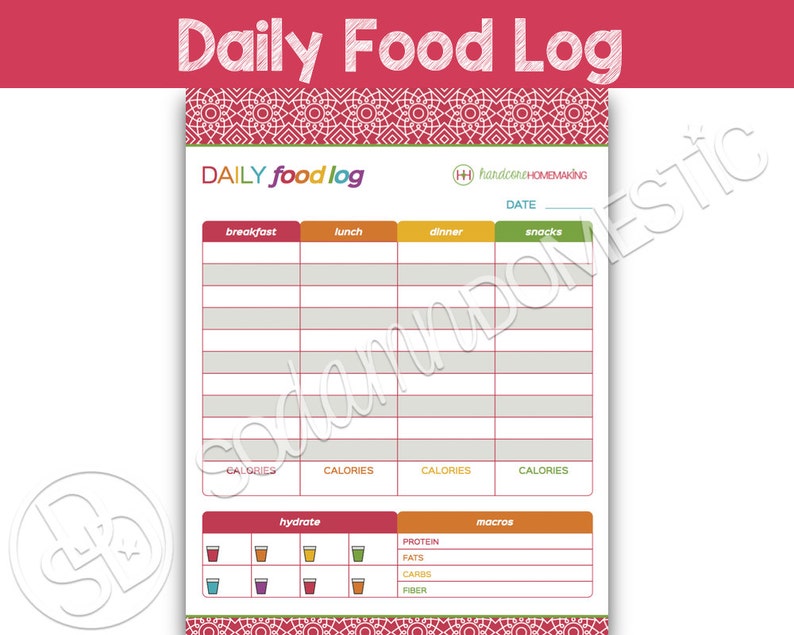 Daily Food Log Food Tracker Food Journal Food Diary Food Log Meal