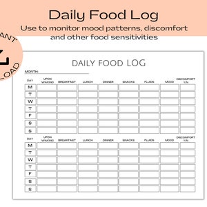 Daily Food Tracker Printable Daily Food Log Daily Food Etsy UK