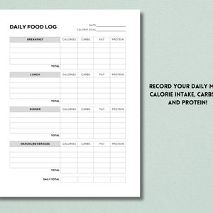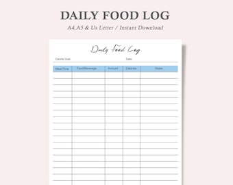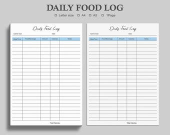 Daily Food Log Journal Printable PDF Calorie Tracker Instant