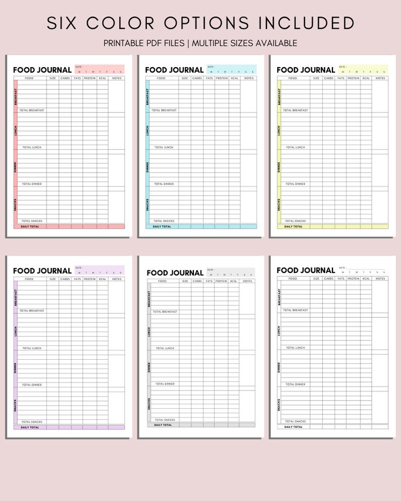 Daily Food Log Etsy