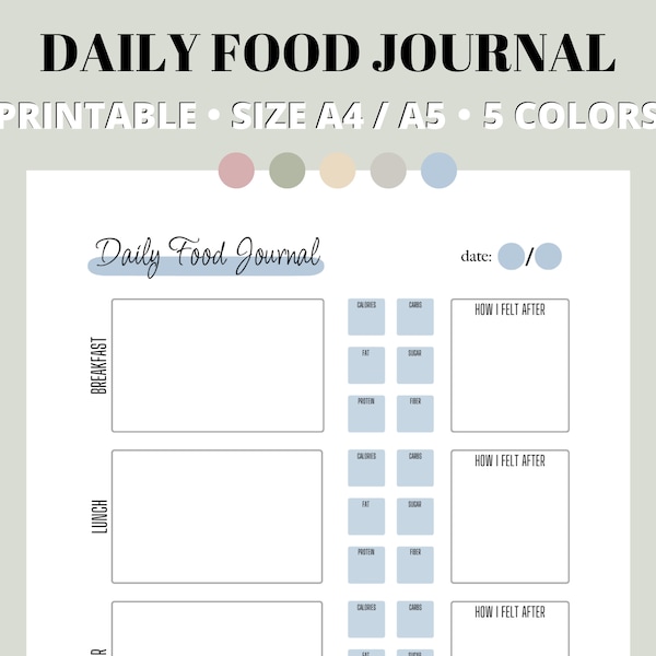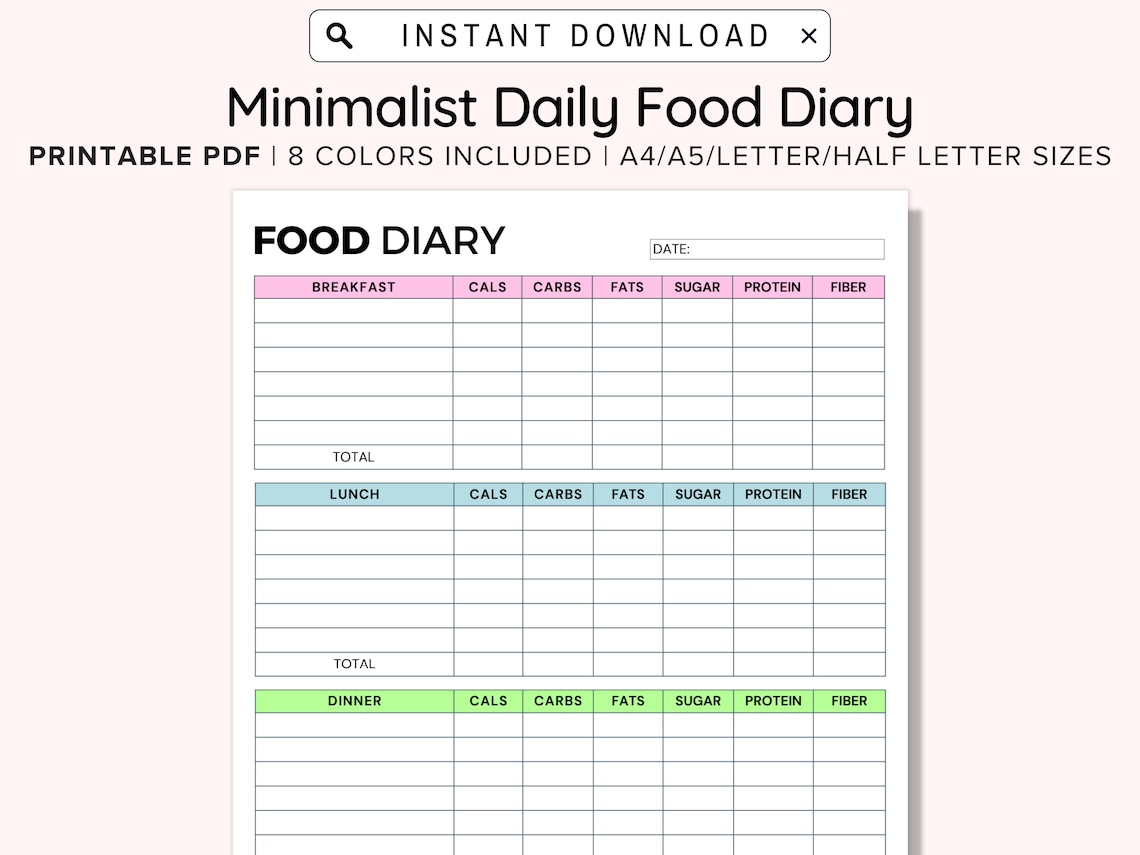 Food Journal Printable Daily Food Diary Printable A4 A5 Etsy