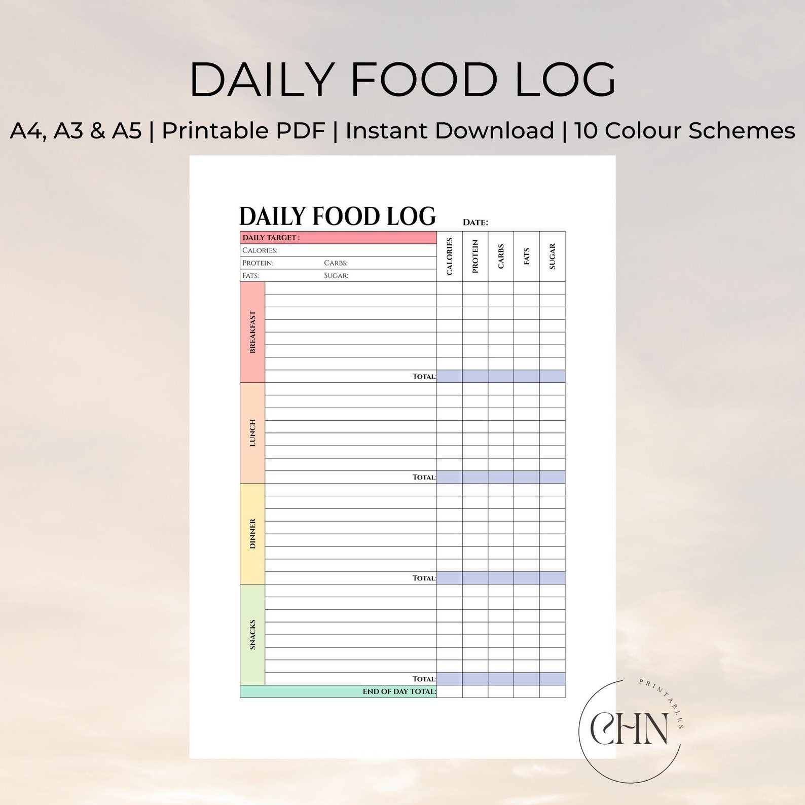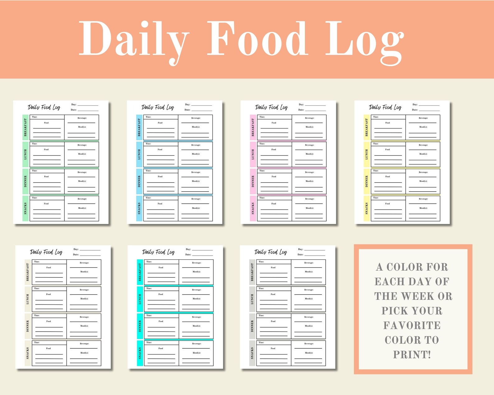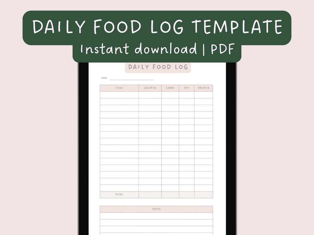 Daily Food Log Template Etsy