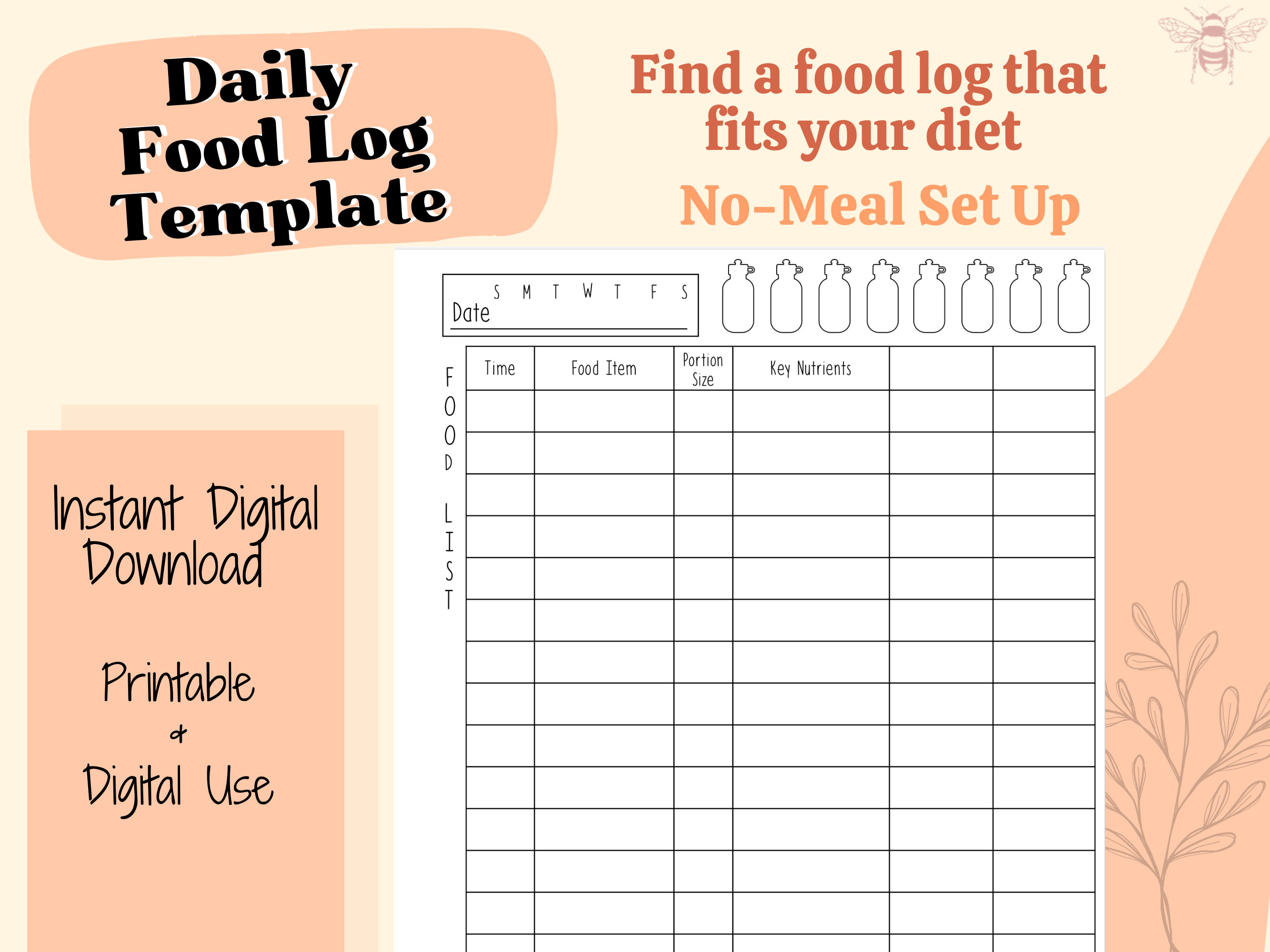 Digital Daily Food Log Template Instant Download No meal Nutrition