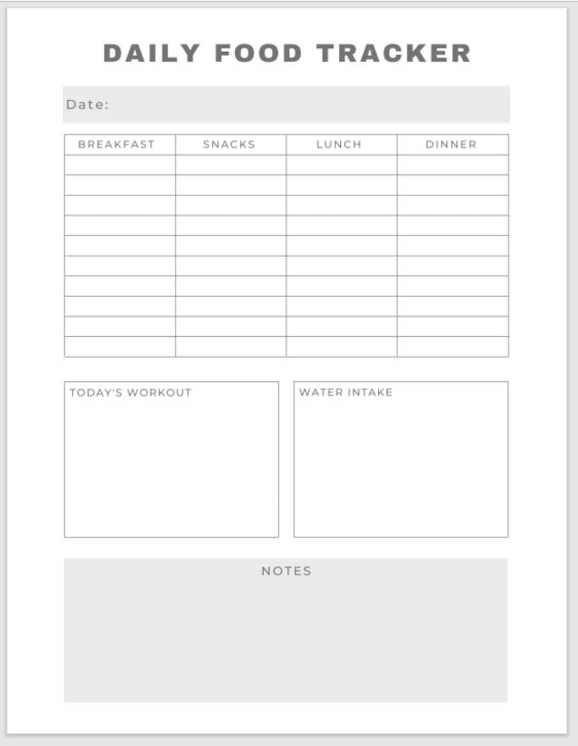 Printable Minimalist Daily Food Tracker Printable Daily Food Tracker