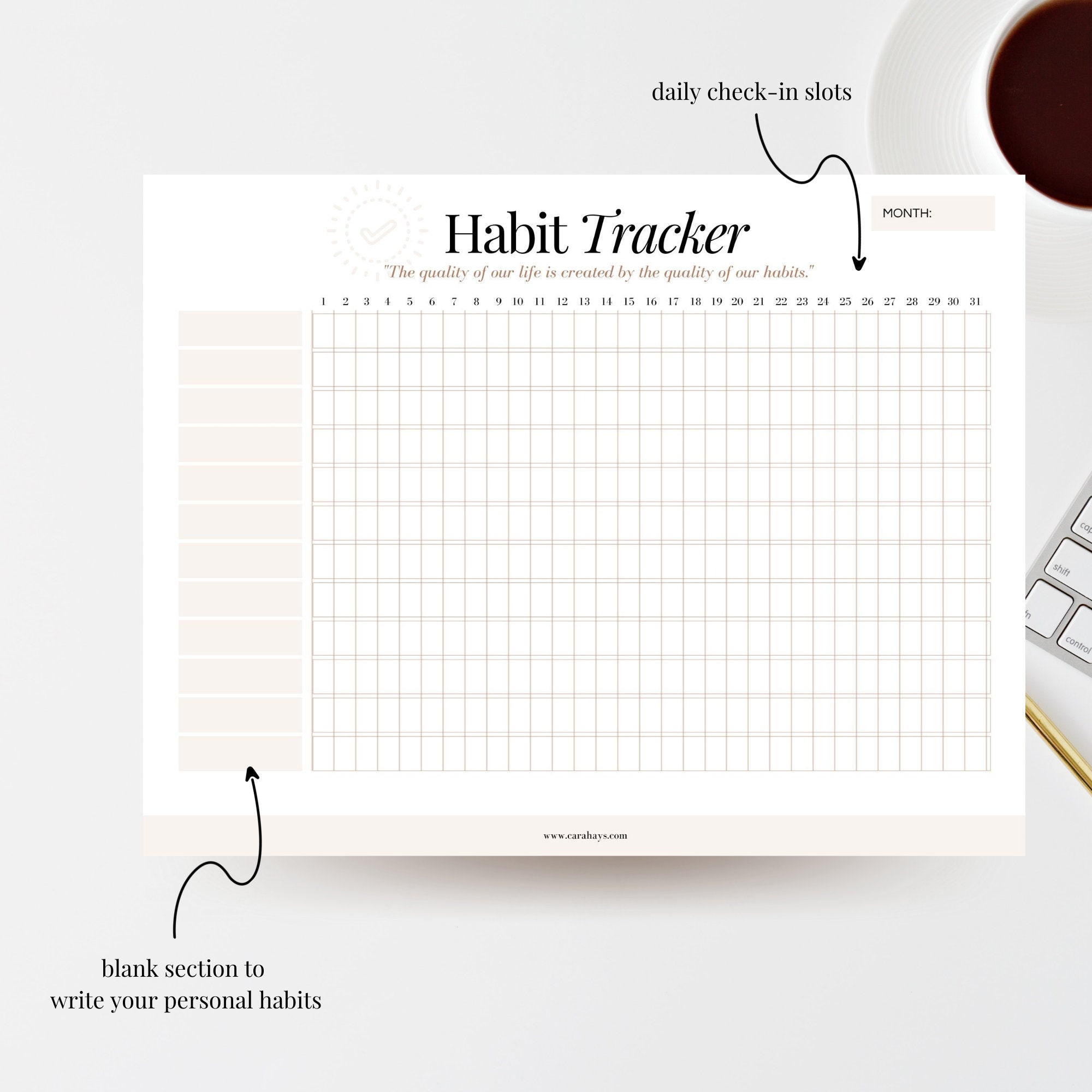 Daily Habit Tracker Digital Habit Tracker Printable Fillable PDF