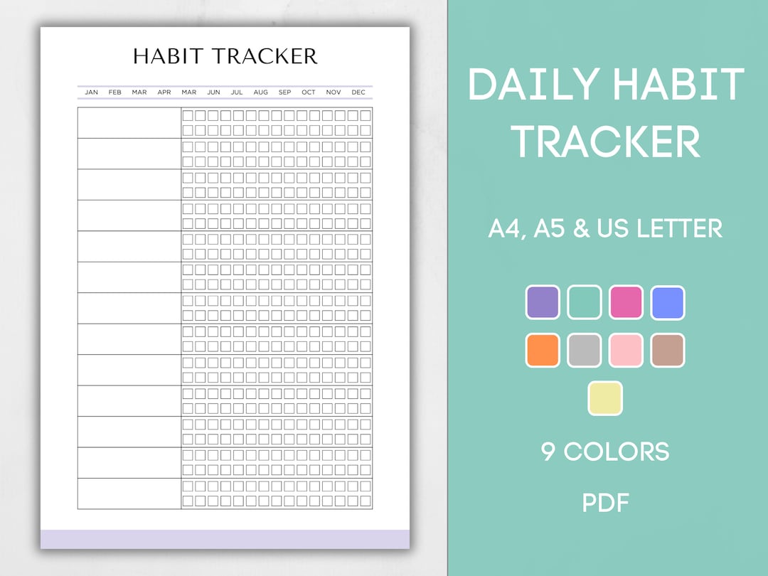 Daily Habit Tracker Printable Riodigit: Design assets Printables