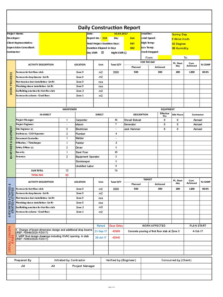 Construction Site Report Template prntbl concejomunicipaldechinu gov co