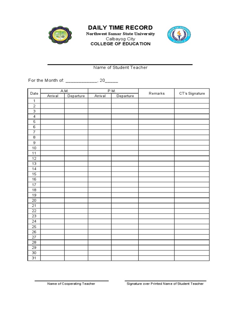 Daily Time Record Sample PDF