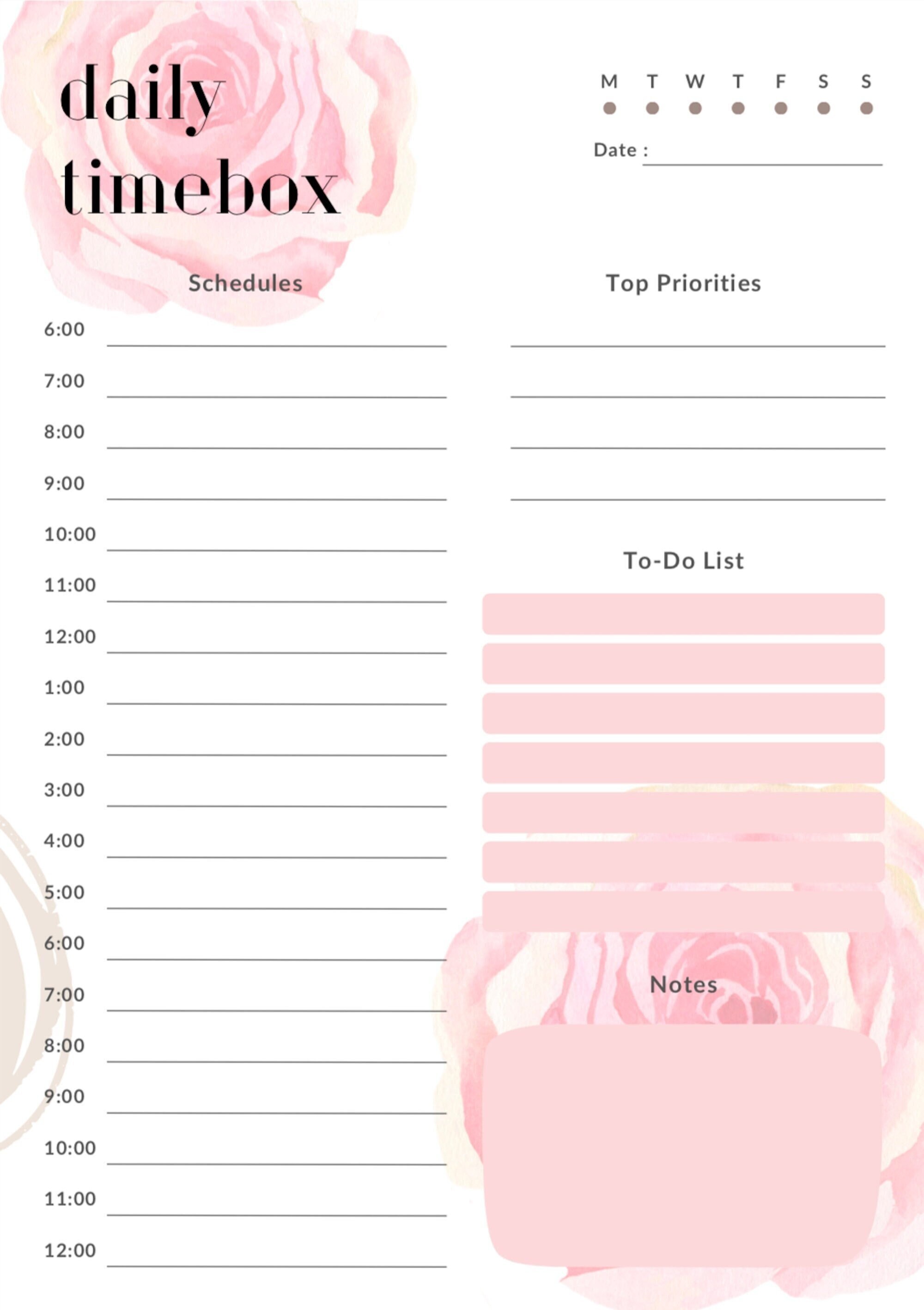 Timebox Planner Pink to Do List Daily Boxing Template Printable