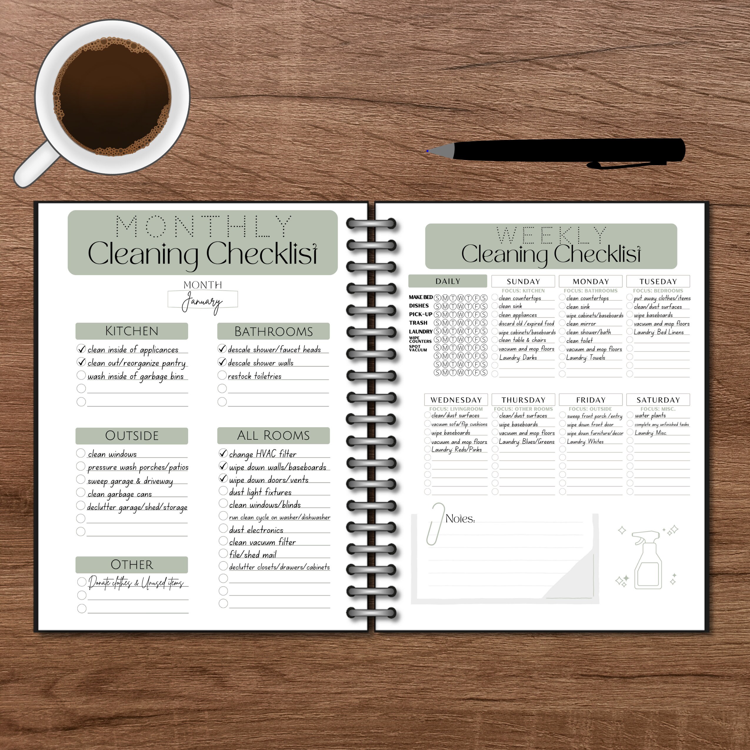 Printable Cleaning Checklist Bundle Monthly Weekly Cleaning