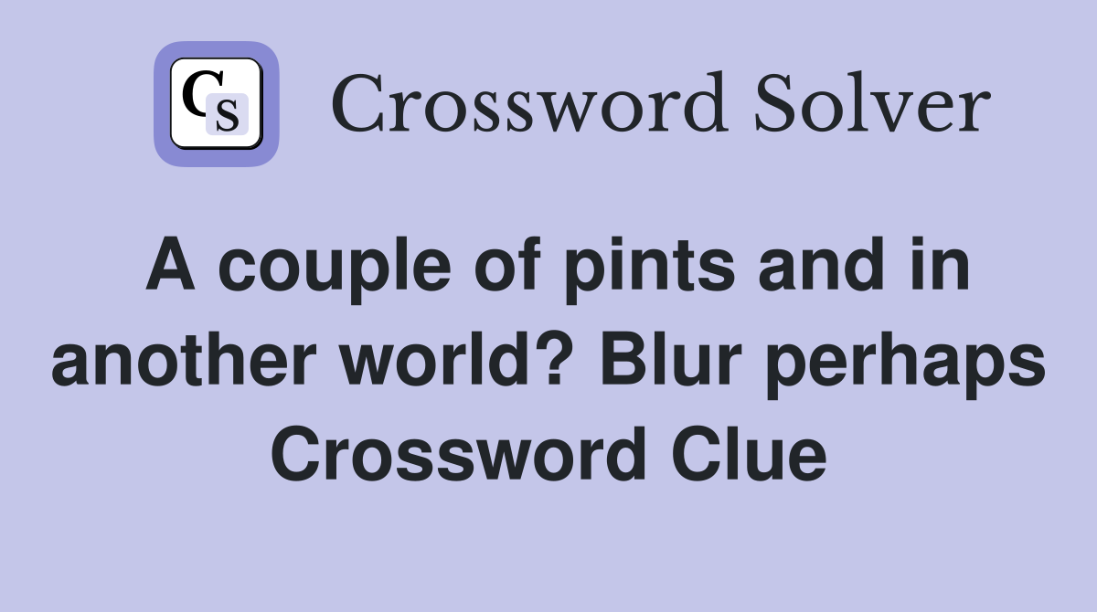 A couple of pints and in another world? Blur perhaps Crossword Clue